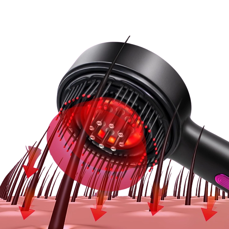 Ce n'est pas juste une brosse, c'est une expérience ! Ses picots métalliques combinés à la lumière LED rouge revitalisent votre cuir chevelu comme jamais. C'est votre arme secrète pour un cuir chevelu équilibré et une chevelure qui fait tourner les têtes. Vous ne trouverez rien de comparable.